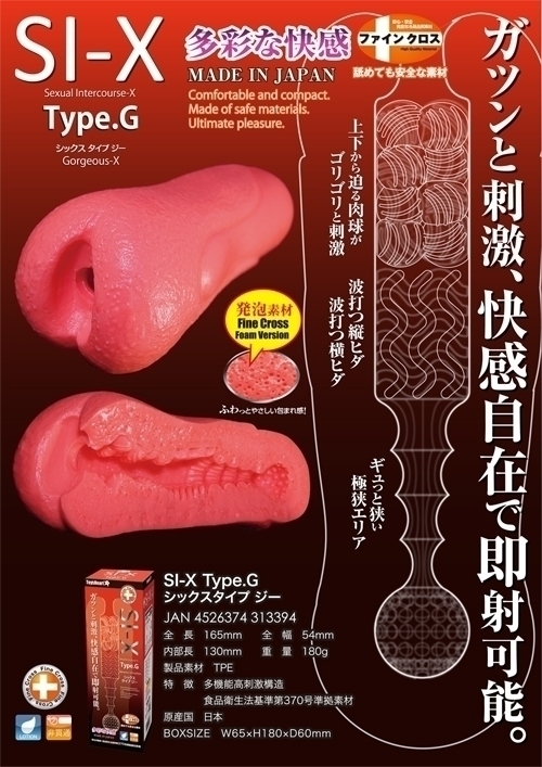 フワッと独特な発泡素材が人気の「SI-X」シリーズから新作登場!ゴージャスなセックス感を味わえるオナホール「Type.G」非貫通型。