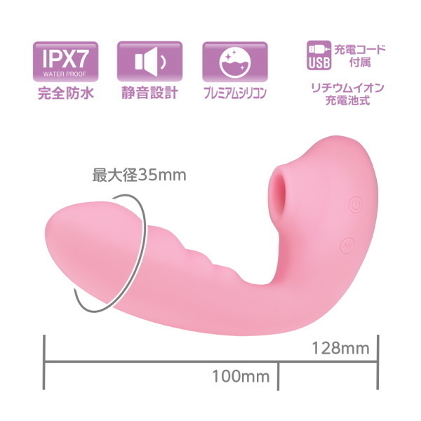 SNSで話題の<吸うやつ>吸引しながら振動を楽しめるくの字形状に温感機能搭載でリアリティUP!振動部分の形状や太さにもしっかりと拘った納得のアイテムです。