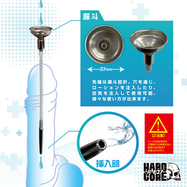 荒々しい刺激が楽しめるグッズブランド『ハードコア』シリーズに、漏斗付きプラグがラインナップ!本体フロントに備わった漏斗から、液体や空気を入れLet’s play!!チューブはメディカルグレードシリコン素材で柔らいから、ナカに入れても安心。