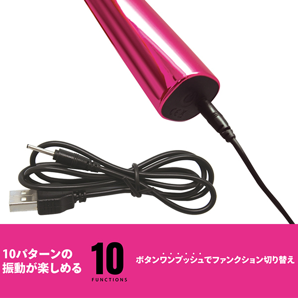 脅威のハイパワーを誇るバイブレーションが特徴で、振動音が小さく防水機能も優れているので使う場所を選びません♪電源は充電式!電池切れの心配もなく、超強力なローター振動を存分にお楽しみ頂けます♪振動パターンは10種類!ボタン長押しで電源のONとOFFが切り替わるので操作も簡単です♪充電用USBケーブル付属。