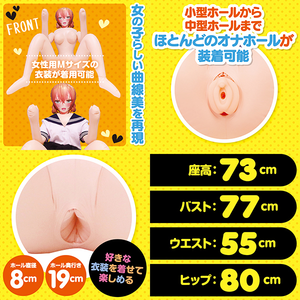 アニメチックな彼女召し上がれ?抱きしめたくなるキューティーBODY 萌え系エアドールの決定版!可愛らしい2次元プリントエアドールは抱き心地抜群!女の子らしい曲線美を再現し女性用Mサイズの衣装が着用可能のため好きな衣装を着せて楽しめる!ハメやすい究極のポージングは対面立位や正常位がしやすい実用的なデザイン。