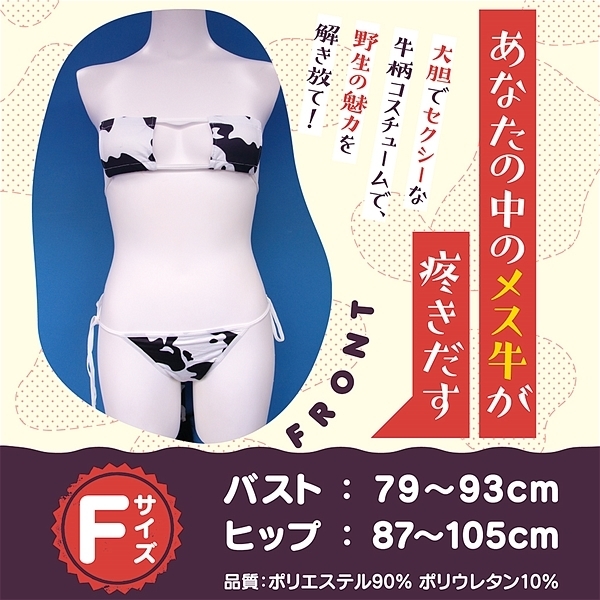 大胆でセクシーな牛柄コスチュームで野生の魅力を解き放て!あなたの中のメス牛が疼きだす、露出度高めの眼帯ビキニとしっぽ付きの紐ビキニショーツ。
