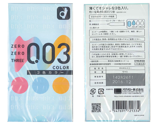 HOME > コンドーム > 薄い・厚い > オカモト ゼロゼロスリー003 (3色カラー)