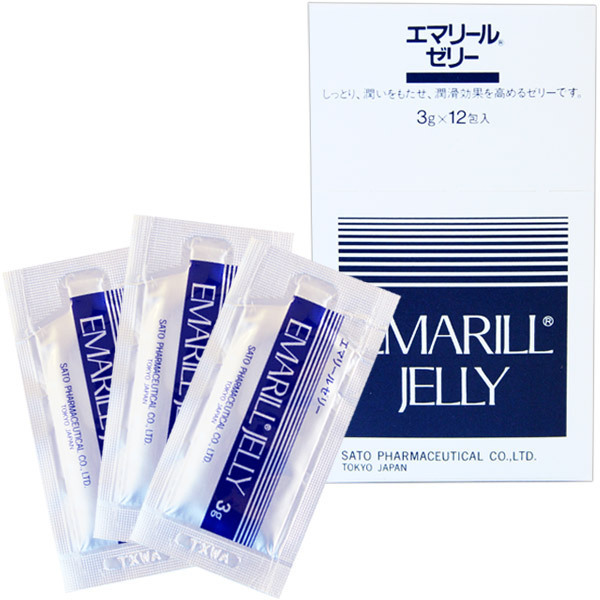 しっとり潤いをもたせて潤滑効果を高めるゼリー「エマリールゼリー 3g×12個入り」。
