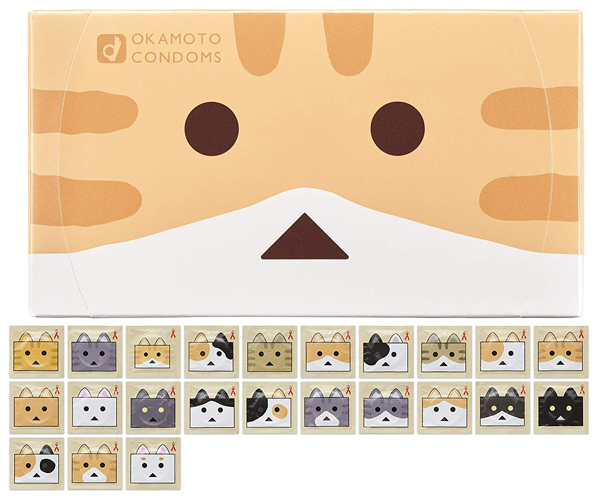 オカモトとニャンボーのコラボレーションコンドーム♪個包装もかわいいニャンボー柄(全23種)ねこの温もりあったかニャンコゼリー採用。