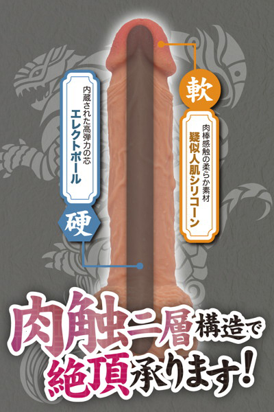高弾力を生み出すエレクトポールと柔らかな疑似人肌シリコンの2層構造で生の肉棒のような感触を実現!リアルな造形が興奮を誘う絶頂仕事人シリーズより22cmの吸盤付きディルドが登場。
