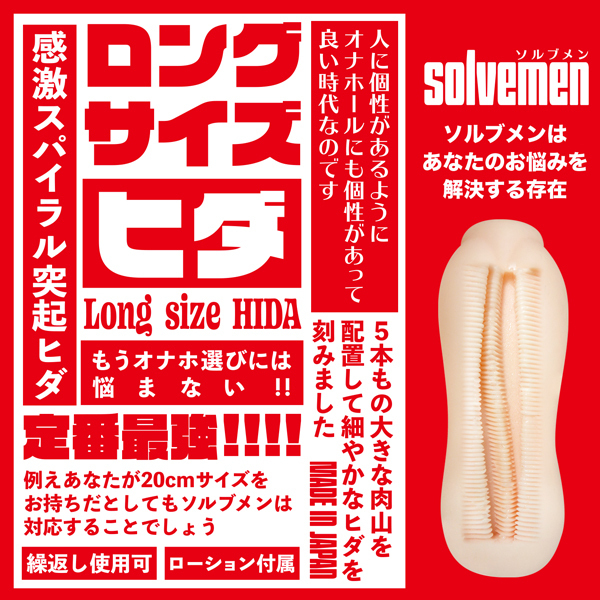 様々な人の悩みをなんとか解決したいというコンセプトをもとに生まれた「ソルブメン」より、すっぽり包み5つの縦ヒダで弾くように刺激する♪全長18.5cm、重さ450gのビッグな日本製の非貫通オナホが登場。