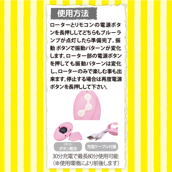 ローターにもスイッチが付いているため、単体での使用も可能!1人は勿論、パートナーと一緒に遊んで楽しもう♪リモコンはボタン電池を1個使用
