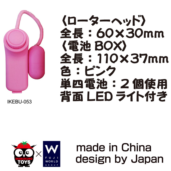 パッケージ:16.0×8.0×5.5cm 本体:ローター6.0×3.0cm・電池ボックス11.0×3.7cm 重量:160g 電池:単四電池×2本使用