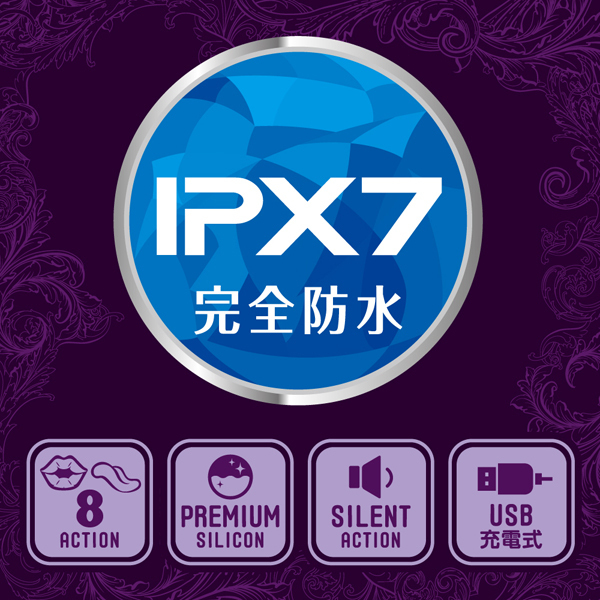 素材は高品質なプレミアムシリコンを採用!IPX7等級の防水仕様で、入浴しながらの使用は勿論、丸洗い出来て衛生的♪90分充電で最大2時間可動