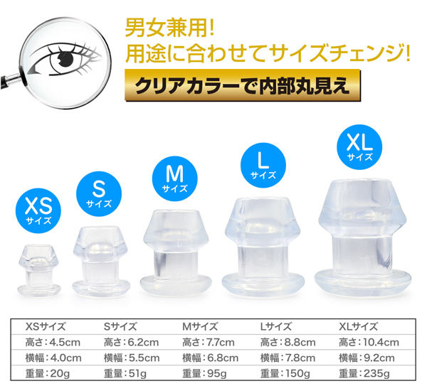 日本人向けに作られた男女兼用拡張トンネルプラグ!内部穴360度見渡せる極上の光景幅広いプレーが可能な多用途プラグ柔軟性と形状保持力を備えた透明色の拡張アイテムです。