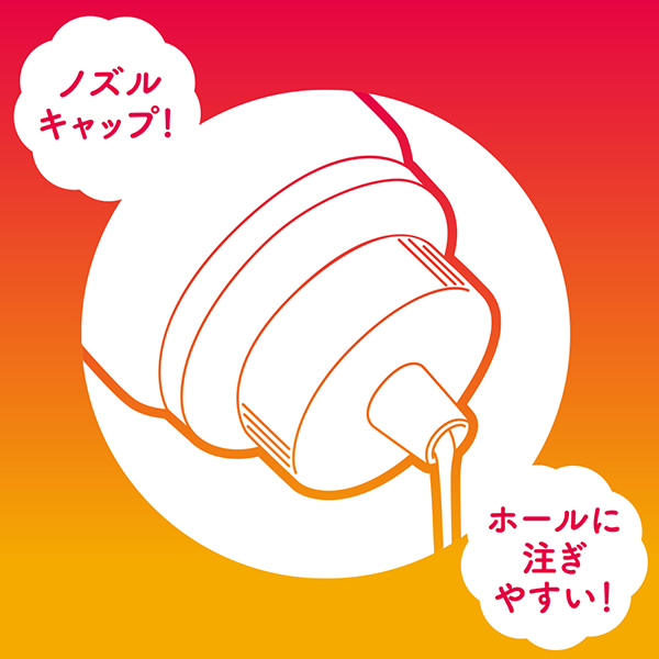 狭い穴のホールにも注ぎやすいノズルキャップ仕様。