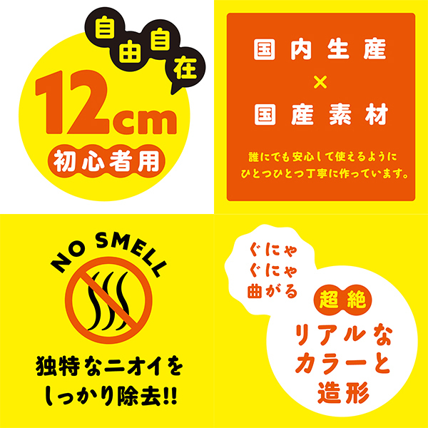 『ぷにっとやわらかやみつき感触』×『好きな形に自由自在』×『リアルブラックなカラーと造形』でこだわりの仕上がり。