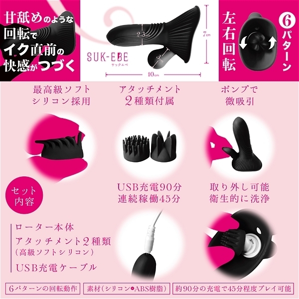 【セット内容】ローター本体/アタッチメント(高級ソフトシリコン)/USB充電ケーブル。