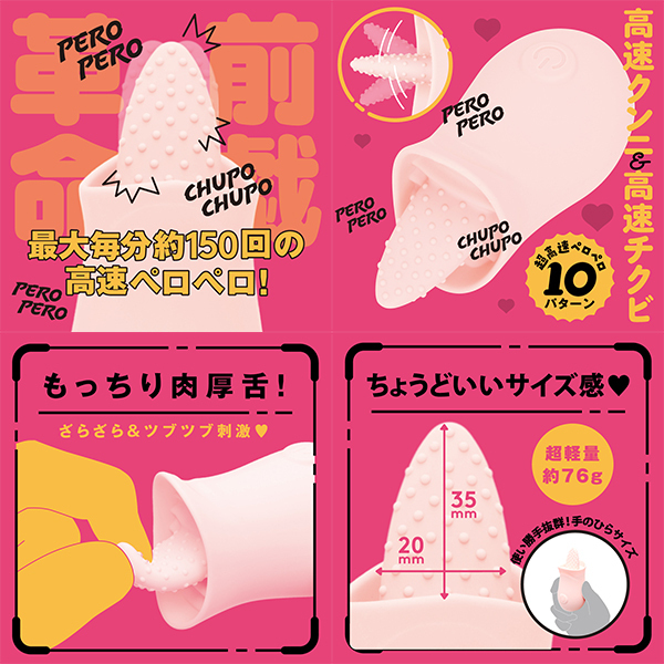 マンネリしない多彩な高速ペロペロ10パターン!最大毎分約150回の高速ペロペロ!防水機能IPX6等級。